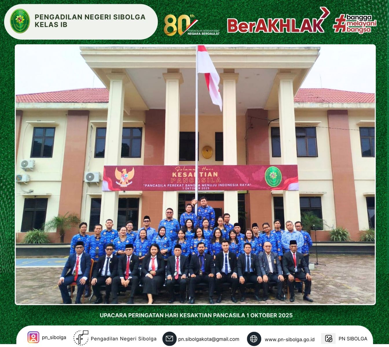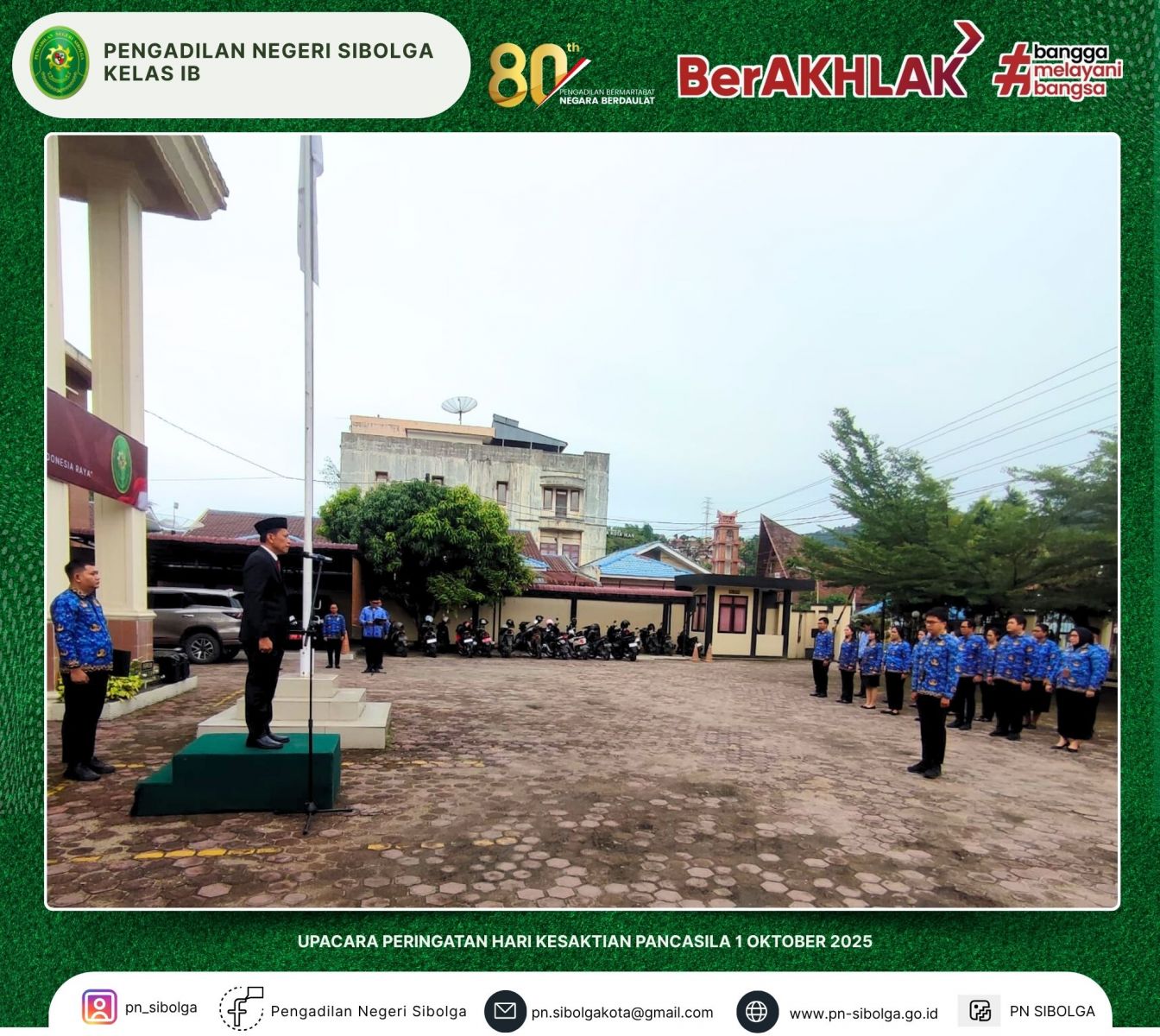 Pengadilan Negeri Sibolga melaksanakan Upacara Hari Kesaktian Pancasila, Rabu 1 Oktober 2025 dengan tema : Pancasila Perekat Bangsa, Maju Indonesia Raya