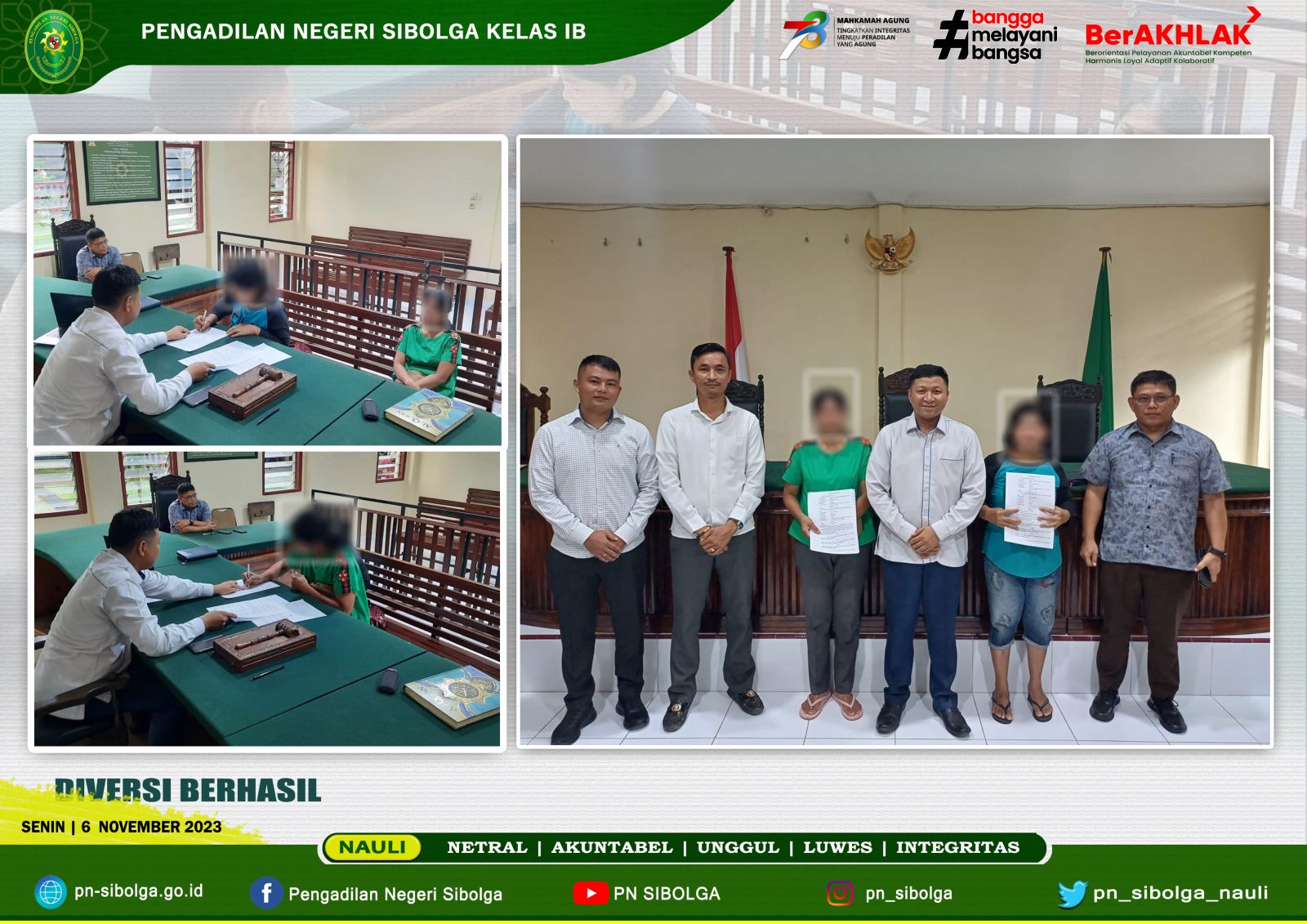 MEDIASI BERHASIL DENGAN PERDAMAIAN YANG DILAKUKAN OLEH HAKIM MEDIATOR PN SIBOLGA | 122/Pdt.G/2023/PN Sbg